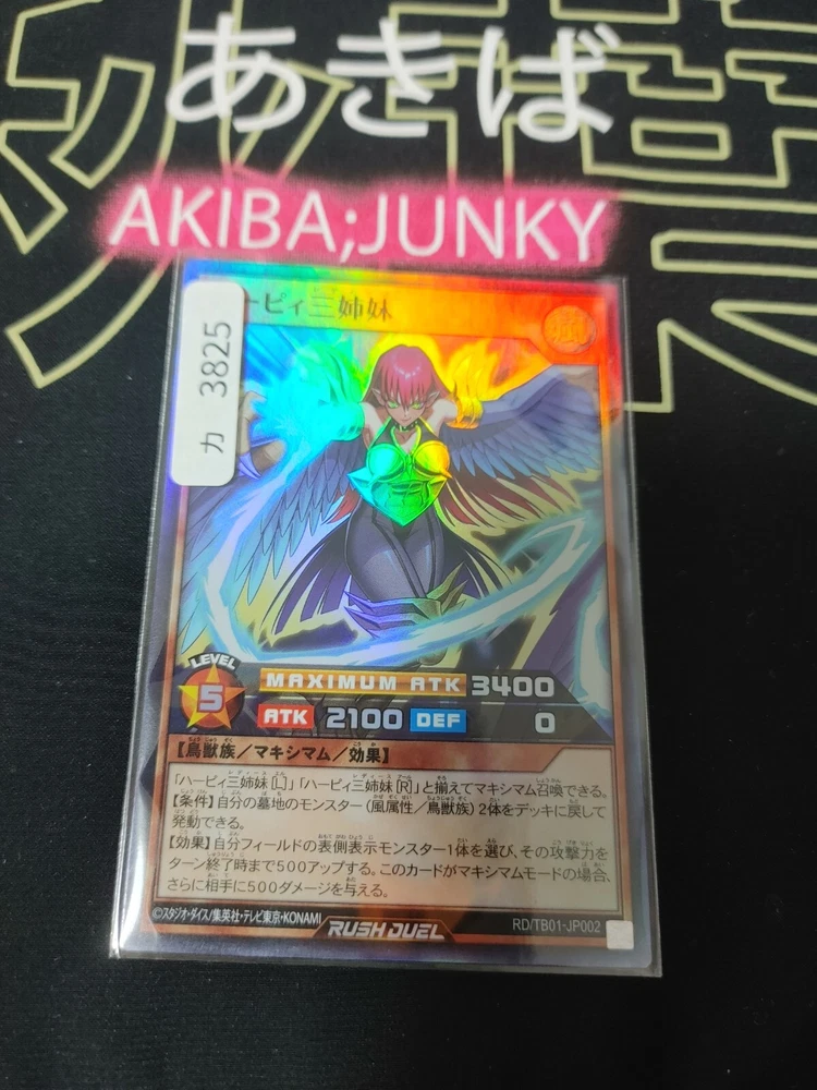 WELCOME TO AKIBA;JUNKY ONLINE OTAKU SUPPORT SHOP 。゜゜(´O`) ゜゜。 We are a registered Japanese dealer handling Japanese products & antique collectibles. We can export items from Japan straight to you. For other listed inventory check HERE ★We can do discounted combined shipping for bulk orders ★ -- Cards can be shipped together for a flat shipping cost / also can be combined in packages with larger items -- Item Description: Yugioh RD/TB01-JP002 Harpie Ladies Super Rare Rush Duel JAPAN UNCENSORED Pre-displayed used condition - Yugioh Individual Card -- Images are of actual item being sold and that will be sent. Please refer to the image details. Product Condition: [pre-owned / pre-displayed] considered in used condition slight wear due to age. Slight wear and tear may be present on the outer package and possibly on the item to age and storage conditions. Please refer to images for visual confirmation. Compatibility/Language of the media is the responsibility of the buyer. Payment: Immediate Payment required. Shipping Options: ◆ International Economy Shipping from Japan -- no tracking / no insurance - approximately 2 weeks - 1 month transit time. Affordable economy option. Cards will be packed / weather proofed carefully and commercial invoice will be included. ◆ International Priority Shipping from Japan -- includes tracking / insurance - approximately 1-2 weeks transit time. Most speedy/secure option . Cards will be packed / weather proofed carefully and commercial invoice will be included. ★Recommended for combined shipping with other products ★ *Note: Import duties, taxes and charges are not included in the item price or shipping charges. These charges are the buyer's responsibility. Please check with your country's customs office to determine what these additional costs will be prior to bidding/buying. Returns accepted per return policy* - As items are shipped internationally, returned items must be sent via tracked shipment (return shipping cost covered by buyer). In the event of a lost package a lost package report must be filed with the local post office and evidence must be provided to us for processing. Items in our store are authentic from Japan, thank you for shopping! Is there a specific Japanese product that you are trying to locate? Or interested in ordering bulk collectible items from Japan? Leave it to Akiba;Junky! With years of experience in the otaku swamp and domestic connections there is a good chance that we can locate what you have been searching for! You can touch base with us by sending us a message. We will do everything in our power to acquire items that you are looking for! サラバ!(ノ ̄ω ̄)ノ・・・ありがとうございます!・・・●~( ̄□ ̄*)