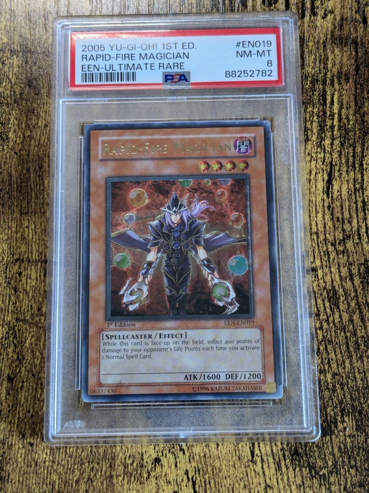 YUGIOH ELEMENTAL ENERGY 1st EDITION EEN-EN019 Rapid-Fire Magician Ultimate Rare This card has been professionally graded by PSA to be NM - MINT