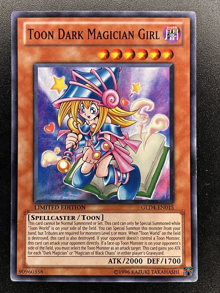 This Toon Dark Magician Girl card is a fantastic addition to any Yu-Gi-Oh collector's set! The gold Series 4 Limited Edition looks stunning, and the near-mint condition is flawless. Seller was quick to ship, and communication was great—very happy with this purchase. A must-have for fans of the classic toon monsters!