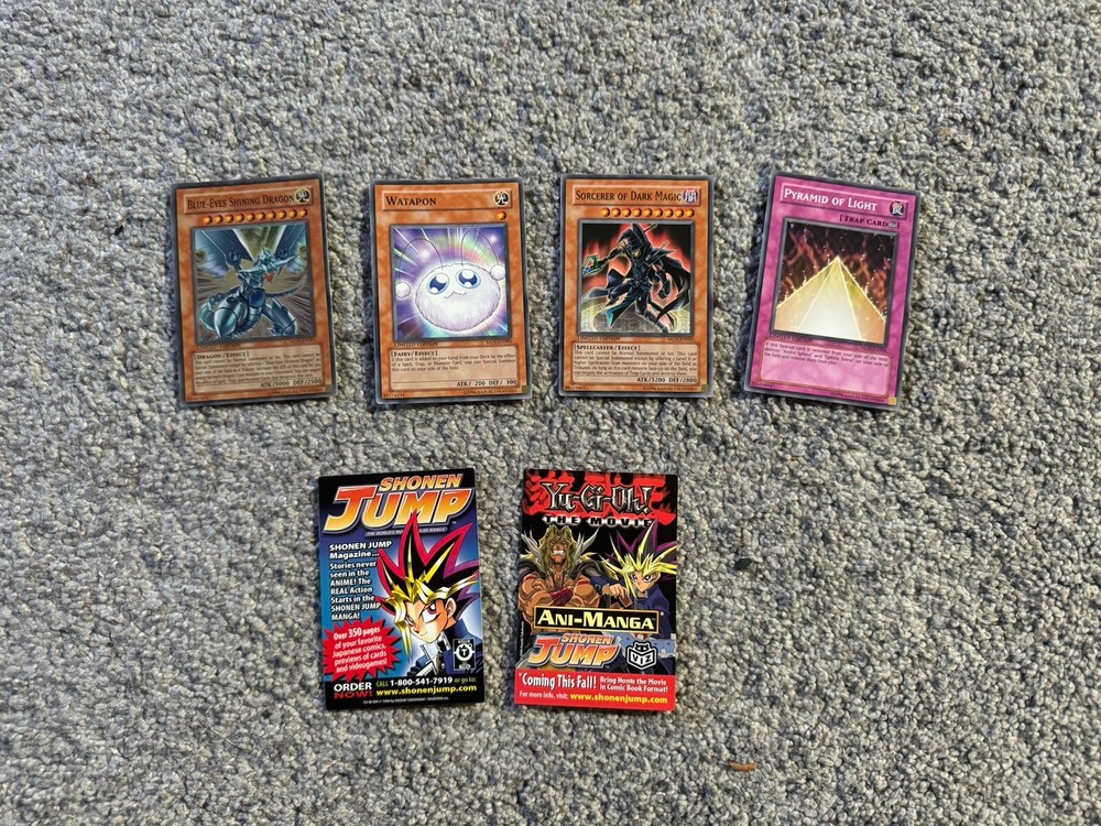 The price is per pack. Each pack contains two cards. One Shonen Jump promo card and one random card, which could be, Blue Eyes Shining Dragon, Watapon, Sorcerer of Dark Magic, and Pyramid of Light. Each pack is sealed. Some packs are slightly bent.