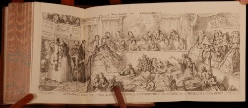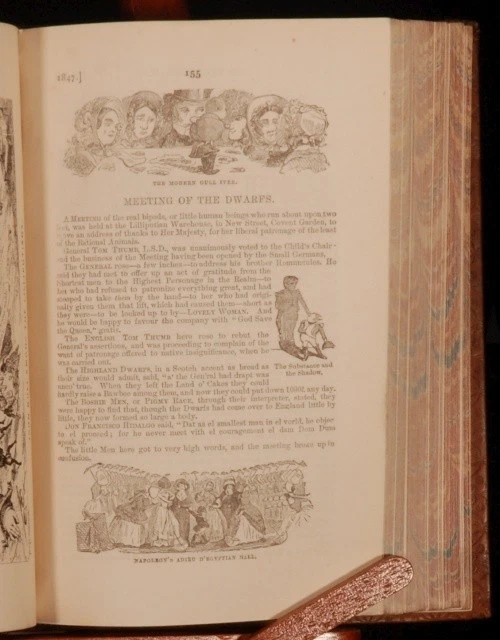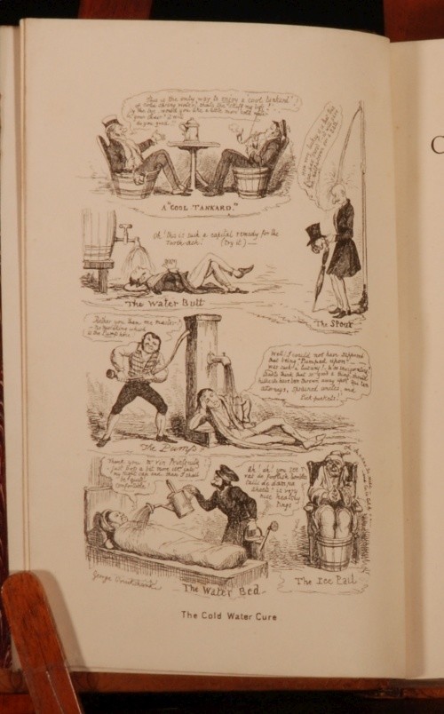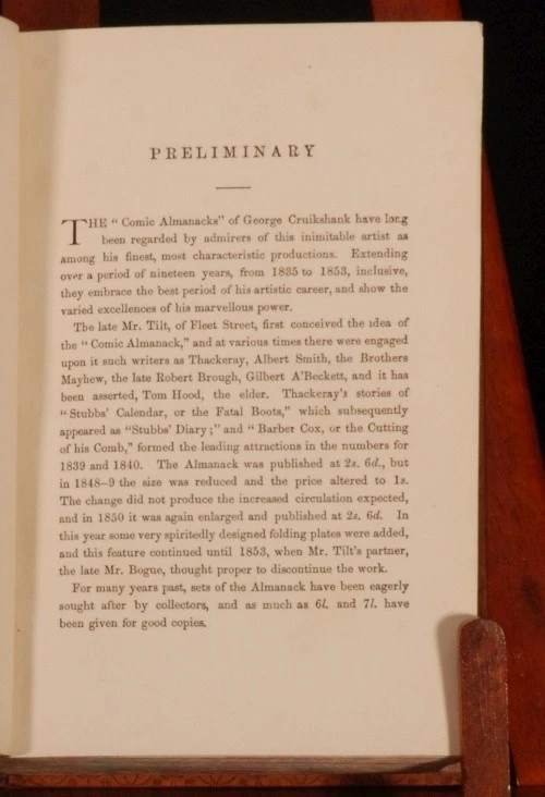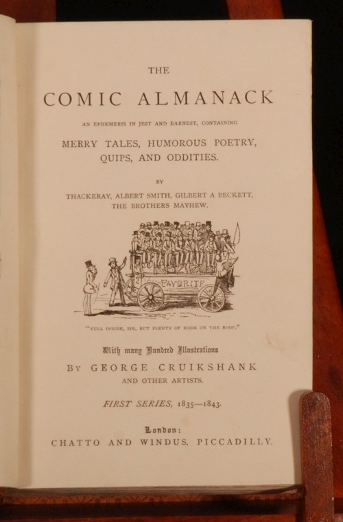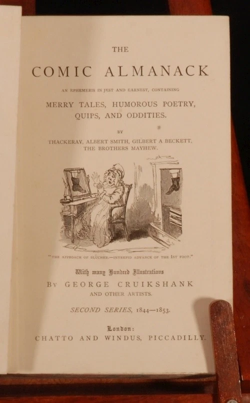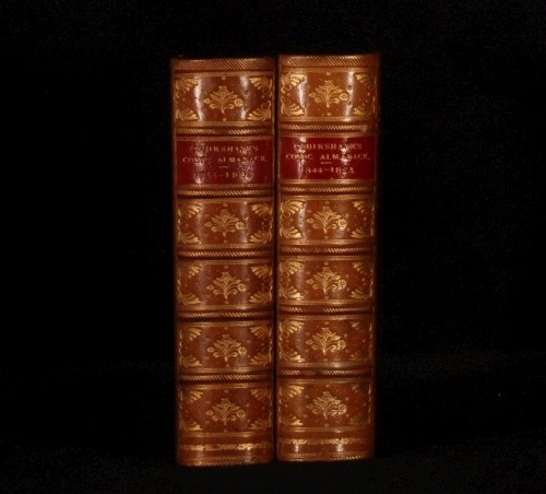 Click here to see our other books! The Comic Almanack: An Ephemeris in Jest and Earnest, containing Merry Tales, Humorous Poetry, Quips, and Oddities. First Series, 1835-1843; Second Series, 1844-1853. In two volumes. William Makepeace Thackeray et al. c1880 Chatto and Windus : London 7.5" by 5.5" 388; 428pp SUMMARY A smart set of this richly illustrated humorous almanac, with diverse content spanning 18 years. Folding Plates,Illustrated,Leather Binding Overall Condition: Very Good Indeed This book weighs 2 KG when packed UK Postage: £ 3.99 US Postage: £ 29.99 EU Postage : £ 21.99 European Postage: £ 23.99 Asia Postage: £ 37.99 Worldwide Postage: £ 38.99 DESCRIPTION 'With many Hundred Illustrations by George Cruikshank and other artists'. Featuring a frontispiece to Volume I, a fold out frontispiece to Volume II, and several fold out plates. Complete in two volumes. CONDITION In a full tree calf binding, with gilt lettering and decoration and lovely uniform colour. Externally, only light shelfwear. Front joint to volume two just starting but perfectly firm. Internally, firmly bound, with only occasional light foxing or small spots. Overall Condition: Very Good Indeed GLOSSARY OF TERMS Overall Condition (Dustwrapper condition rating is shown after that for the book itself, where a dustwrapper is present) Fine - Very well preserved copy showing very little wear Very Good Indeed - Only one or two minor faults, really a very attractive copy Very Good - Quite a wide term meaning no major faults but probably several smaller ones often expected given the age of the book, but still a respectable copy Good - Meaning not very good. Some more serious faults as will be described in the condition report under 'condition' Good Only - Meaning one or more faults that could really do with repair Fair - As with good only above but with other faults leaving a compromised copy even after repair Poor - Really bad and possibly seriously incomplete. We only sell books in this condition where their rarity or value makes them attractive none the less. Major defects will be described. GUARANTEE We offer a full money back guarantee on our descriptions. Please ask for details and conditions. We prefer PAYPAL. If you pay via PAYPAL we will post the item off the same or the next working day with the postage you have selected. Please note we cannot accept USD cheques