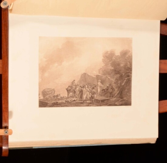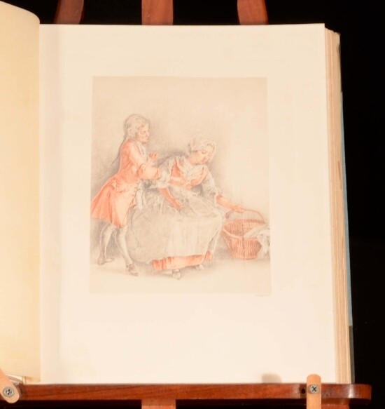 Click here to see our other books! A Finely Bound Collection of Plates Depicting the Lives of the French Aristocracy Unknown c1890 Unknown : Unknown 12" by 9.5" Unpaginated SUMMARY An attractively bound selection of aristocratic plates by French artists. Illustrated,Leather Binding Overall Condition: Very Good This book weighs 1.5 KG when packed UK Postage: £ 3.99 US Postage: £ 23.99 EU Postage : £ 18.99 European Postage: £ 19.99 Asia Postage: £ 31.99 Worldwide Postage: £ 32.99 DESCRIPTION The title page has been neatly removed, leaving the title and exact date of publication a mystery. With plates, in colour, sepia and monochrome, by P.-A. Baudouin, Claude Hon, Louis Trinquesse, Jean-Honore Fragonard, and many more. Each tissueguard is elegantly captioned in red. CONDITION In a half crushed morocco binding over cloth covered boards. Externally, generally smart with some light wear to extremities only. Internally, firmly bound. Very clean and bright throughout. Overall Condition: Very Good GLOSSARY OF TERMS Overall Condition (Dustwrapper condition rating is shown after that for the book itself, where a dustwrapper is present) Fine - Very well preserved copy showing very little wear Very Good Indeed - Only one or two minor faults, really a very attractive copy Very Good - Quite a wide term meaning no major faults but probably several smaller ones often expected given the age of the book, but still a respectable copy Good - Meaning not very good. Some more serious faults as will be described in the condition report under 'condition' Good Only - Meaning one or more faults that could really do with repair Fair - As with good only above but with other faults leaving a compromised copy even after repair Poor - Really bad and possibly seriously incomplete. We only sell books in this condition where their rarity or value makes them attractive none the less. Major defects will be described. GUARANTEE We offer a full money back guarantee on our descriptions. Please ask for details and conditions. We prefer PAYPAL. If you pay via PAYPAL we will post the item off the same or the next working day with the postage you have selected. Please note we cannot accept USD cheques