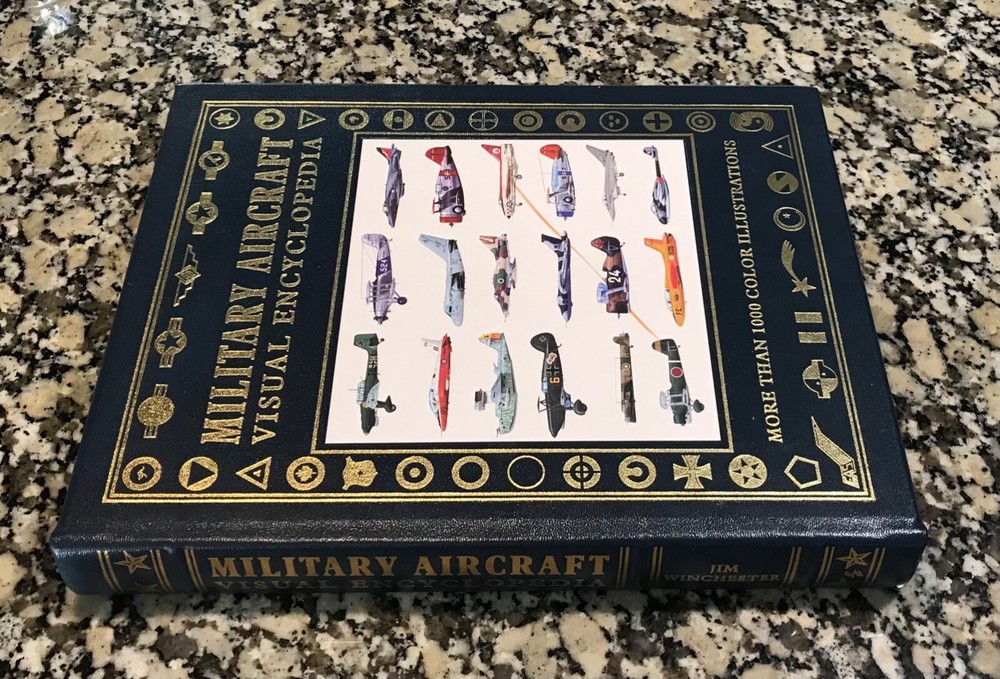 Books from Easton Press Bound in premium leathers, distinctive cover design, hubbed spine accented in 22-karat gold Endsheets of rich moire fabric, permanent satin ribbon page marker Thread sewn pages for strength and durability, gilded page edges for beauty and protection Handsome readable typefaces, beautiful illustrations, archival-quality acid-neutral paper TITLE Military Aircraft: Visual Encyclopedia AUTHOR Jim Winchester MORE DETAILS Dark blue leather binding, with front paste-down measured by 9" x 11 1/4" DESCRIPTION Like new, unread, clean inside, tight hardcover binding SHIPPING Books will be packed safely, and shipped via USPS Media Mail with tracking number.