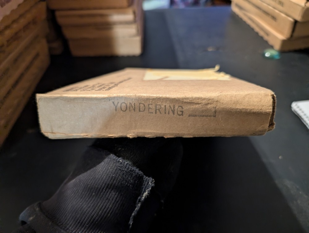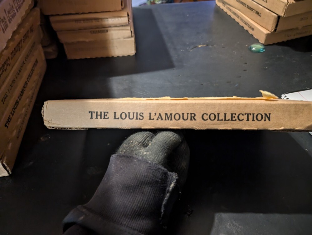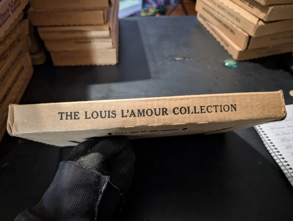 selling a new in box a vintage 1980s of the Louis l'amour collection the title is yondering it is leather bound hardcover with a gold in laid signature on the front of the book it comes in the original box it was shipped in it is a western fiction published by bantam books it was published 1980s in great shape from a smoke free home please look at the pics and if you have any questions please ask