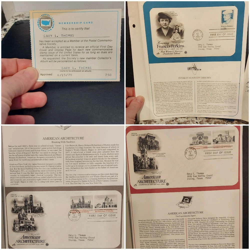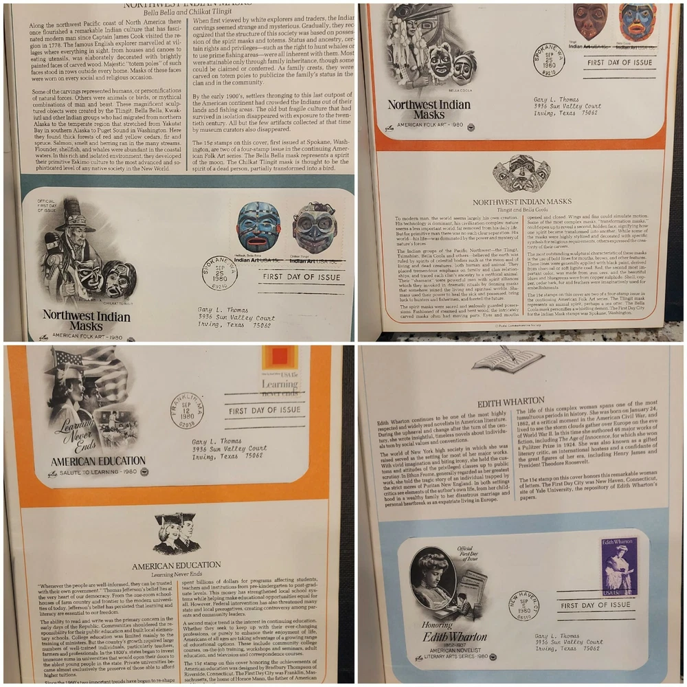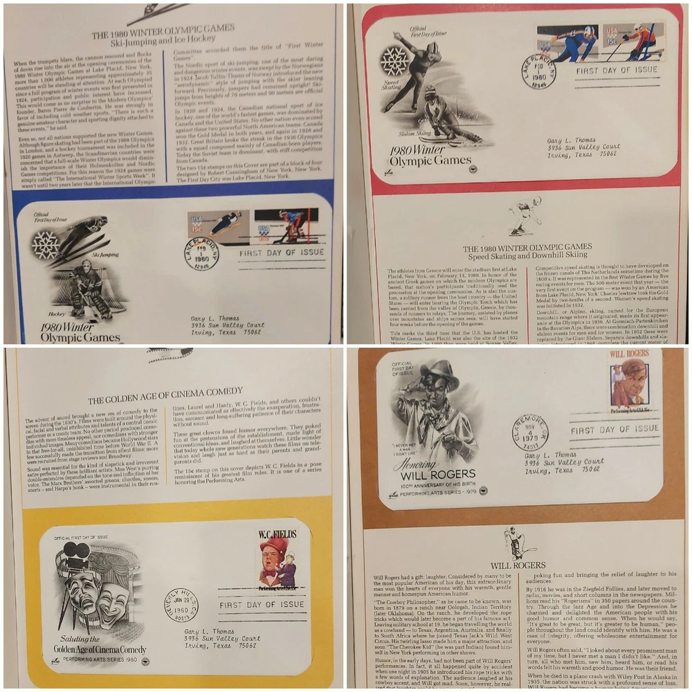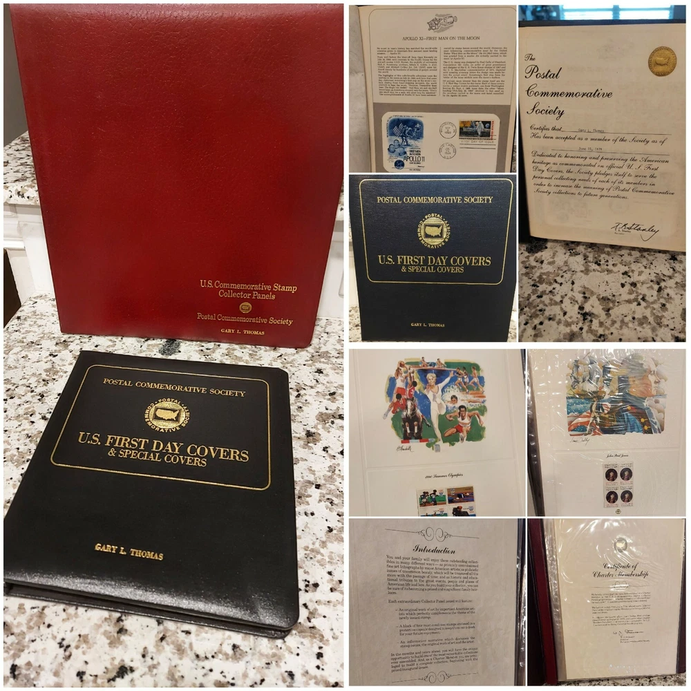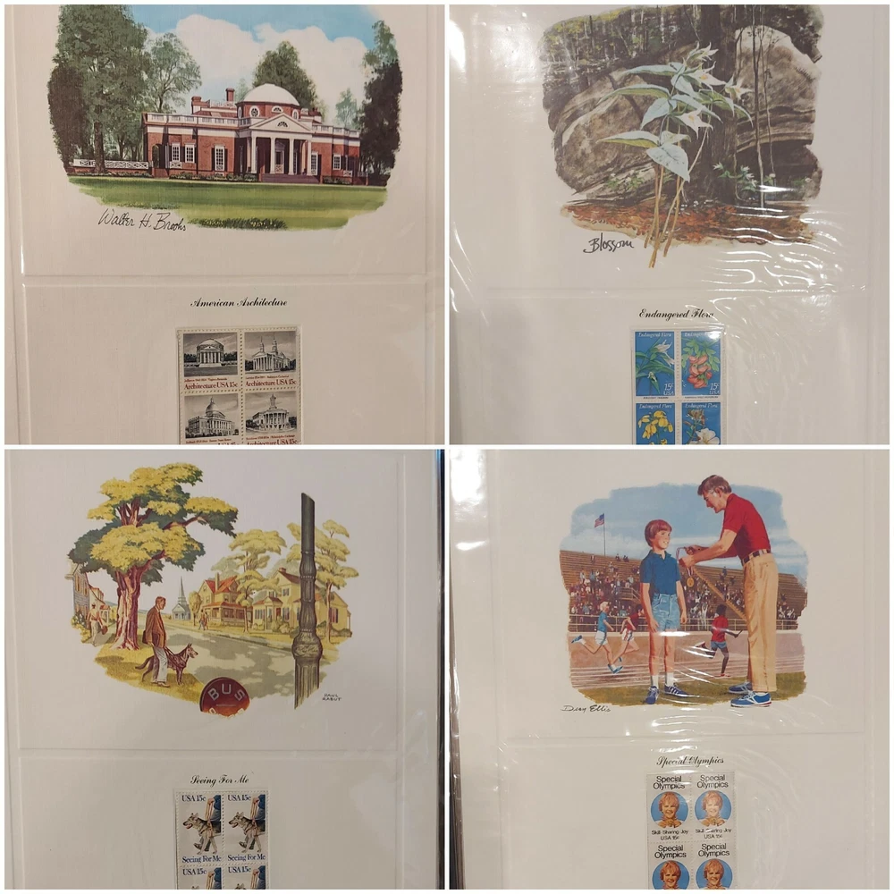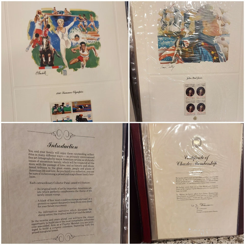 postal commemorative society Stamps two books leather bound with stamps......i had to make collage of photos to fit on lot.... both books great condition There is one paper loose that needs to be put in book ******** Red book 14 pages ******************* Helen keller Veterans admin Frances perkins Emily bissell 1980 winter olympics Ben banneker W.c. fields Will rogers American architecture Endangered flora Seeing for me Special olympics 1980 summer olympics John paul jones *************************************** Black book*********