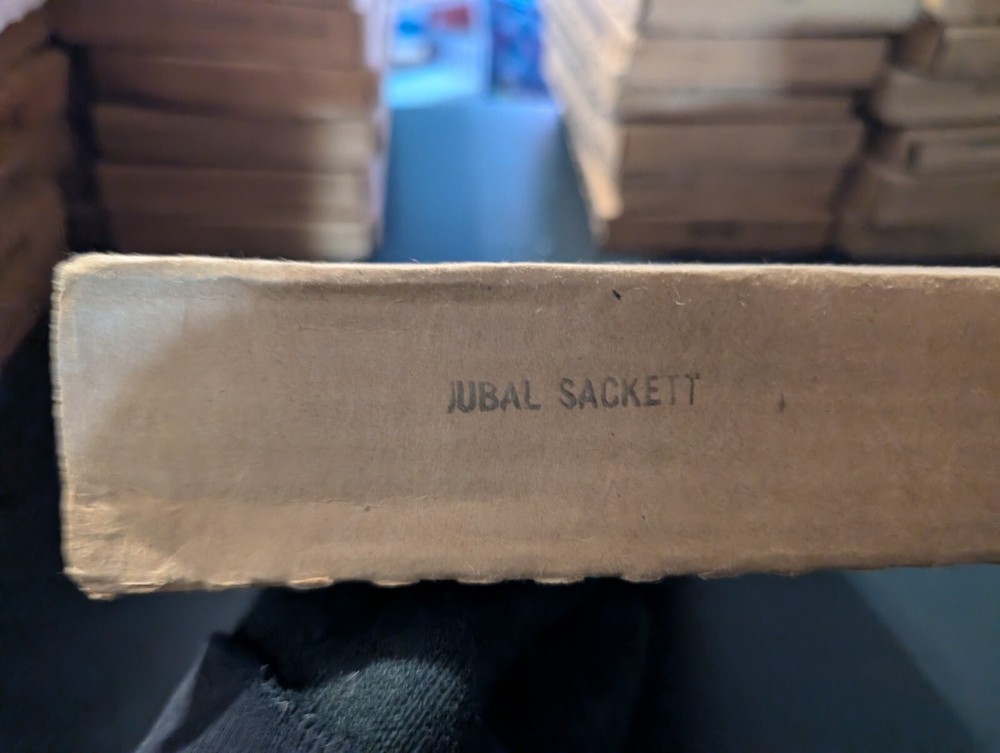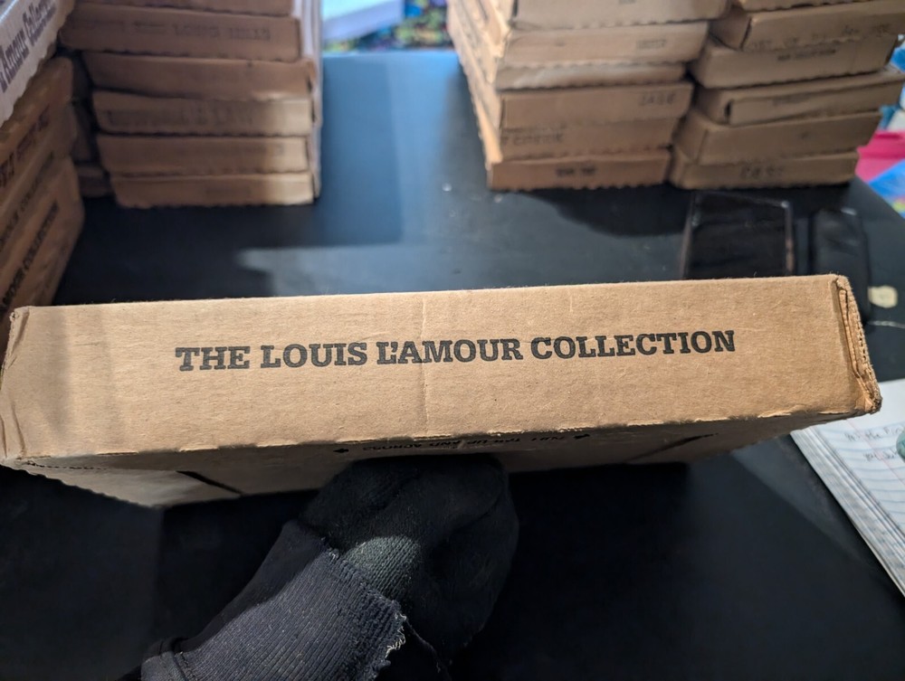 selling a new in box a vintage 1980s of the Louis l'amour collection the title is Jubal sackett it is leather bound hardcover with a gold in laid signature on the front of the book it comes in the original box it was shipped in it is a western fiction published by bantam books it was published in the 1980s in great shape from a smoke free home please look at the pics and if you have any questions please ask