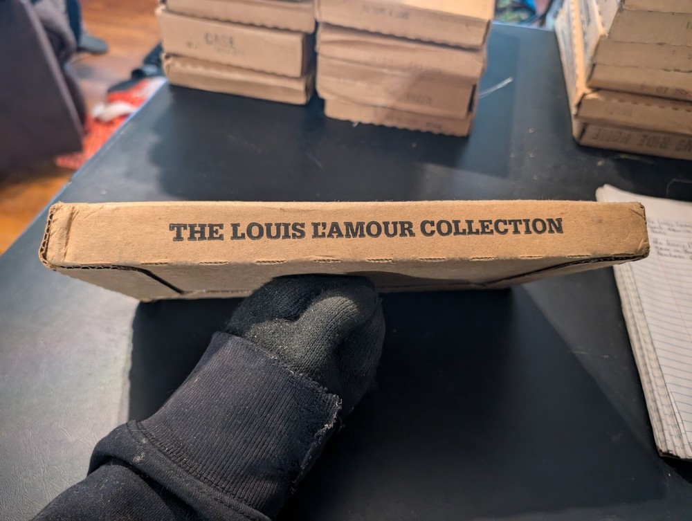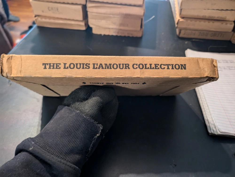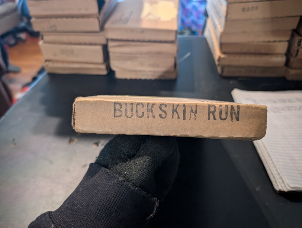 selling a new in box a vintage 1980s copy of the Louis l'amour the title is Buckskin run it is leather bound hardcover with a gold in laid signature on the front of the book it comes in the original box it was shipped in it is a western fiction published by bantam books and was published in the 1980s in great shape from a smoke free home please look at the pics and ask any questions you have