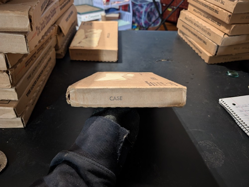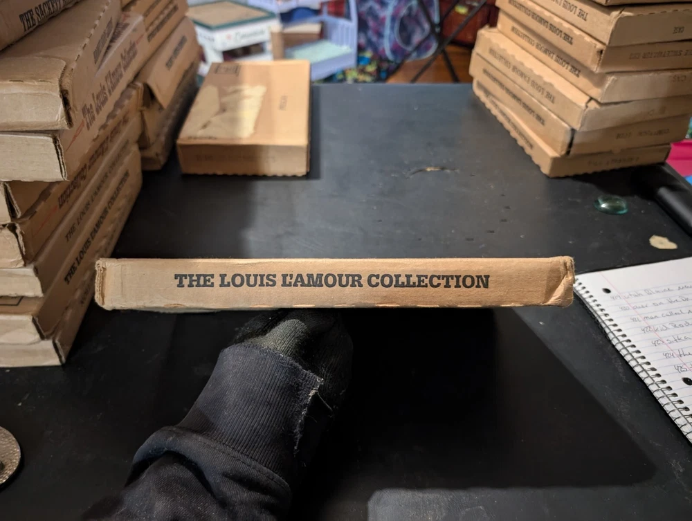 selling a new in box a vintage 1980s of the Louis l'amour collection the title is callaghen it is leather bound hardcover with a gold in laid signature on the front of the book it comes in the original box it was shipped in it is a western fiction published by bantam books it was published in the 1980s in great shape from a smoke free home please look at the pics and if you have any questions please ask