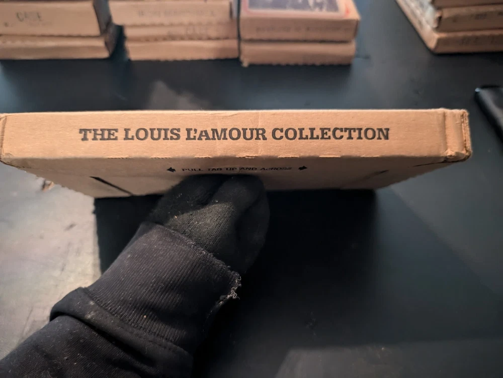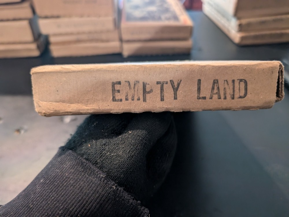 selling a new in box a vintage 1980s copy of the Louis l'amour the title is empty land it is leather bound hardcover with a gold in laid signature on the front of the book it comes in the original box it was shipped in it is a western fiction published by bantam books and was published in the 1980s in great shape from a smoke free home please look at the pics and ask any questions you have