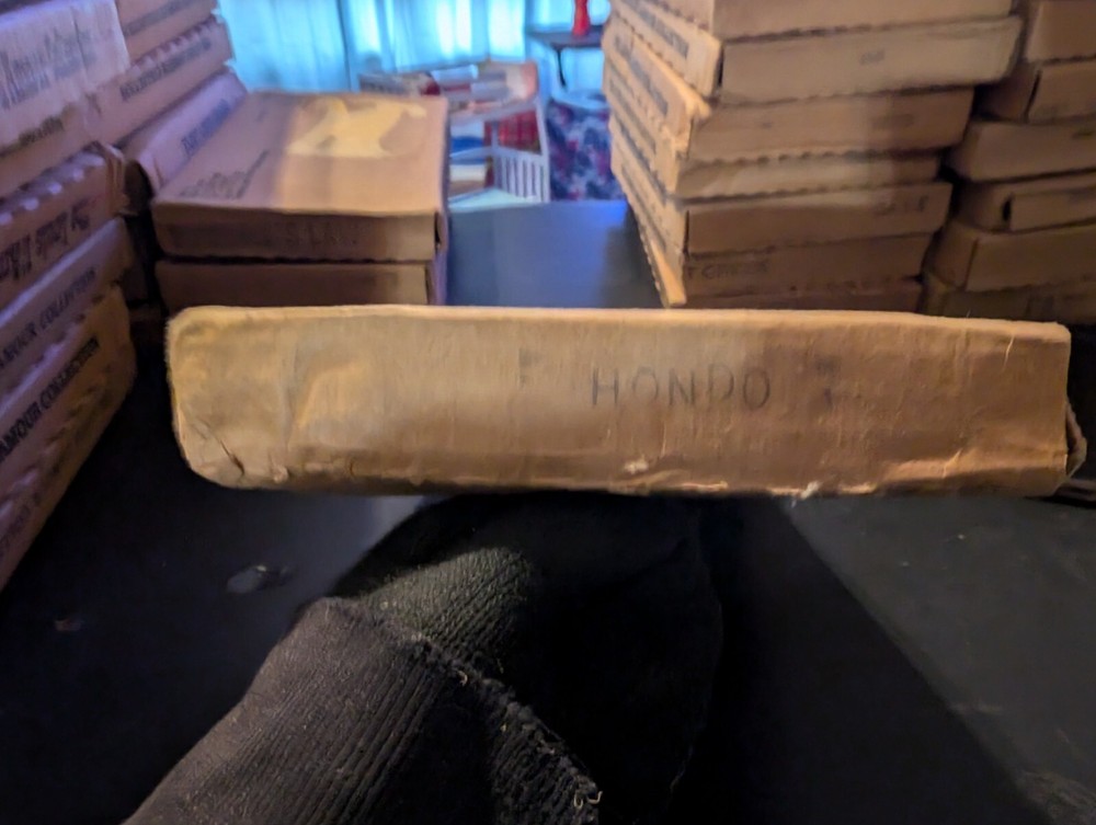 selling a new in box a vintage 1980s of the Louis l'amour collection the title is hando it is leather bound hardcover with a gold in laid signature on the front of the book it comes in the original box it was shipped in it is a western fiction published by bantam books it was published in the 1980s in great shape from a smoke free home please look at the pics and if you have any questions please ask