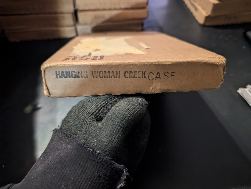 selling a new in box a vintage 1980s of the Louis l'amour collection the title is hanging woman creek it is leather bound hardcover with a gold in laid signature on the front of the book it comes in the original box it was shipped in it is a western fiction published by bantam books it was published in the 1980s in great shape from a smoke free home please look at the pics and if you have any questions please ask