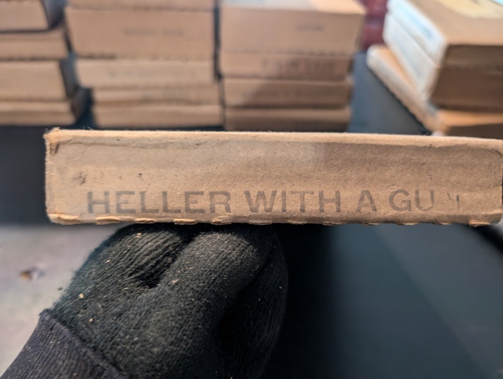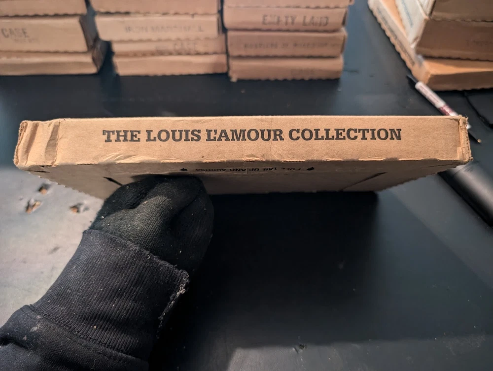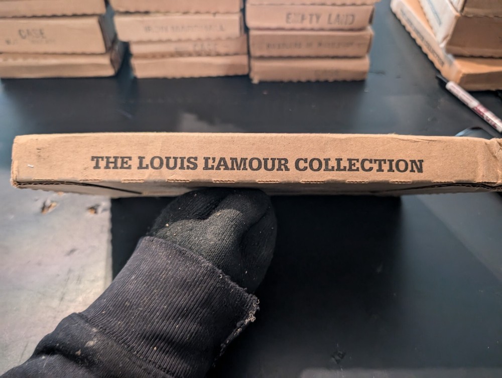 selling a new in box a vintage 1980s copy of the Louis l'amour the title is heller with a gun it is leather bound hardcover with a gold in laid signature on the front of the book it comes in the original box it was shipped in it is a western fiction published by bantam books and was published in the 1980s in great shape from a smoke free home please look at the pics and ask any questions you have