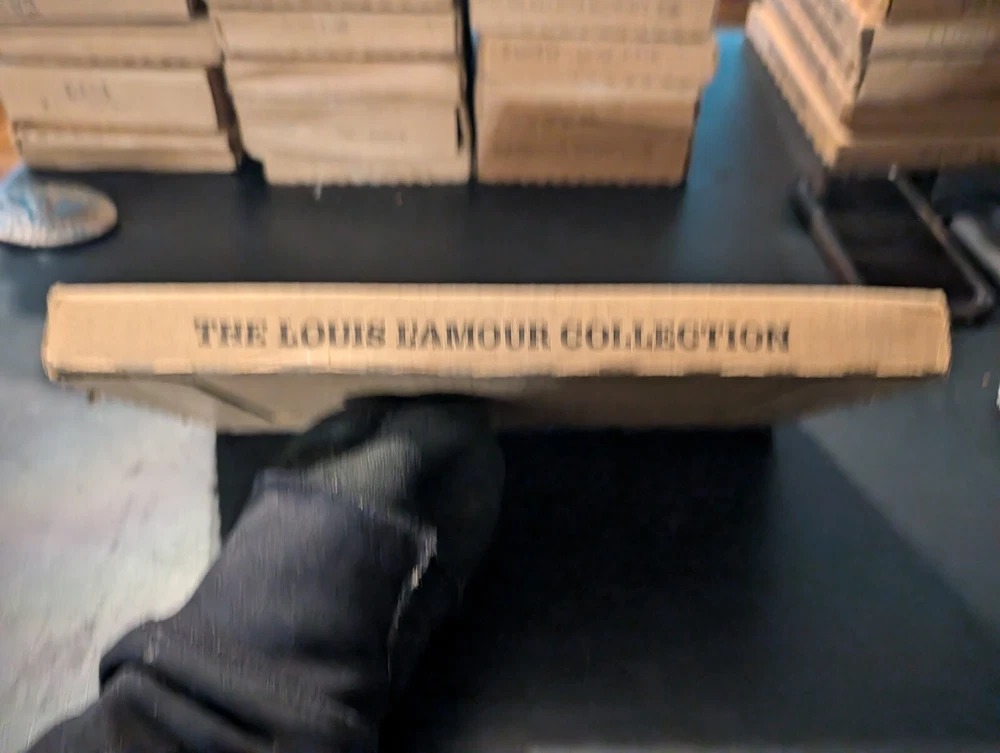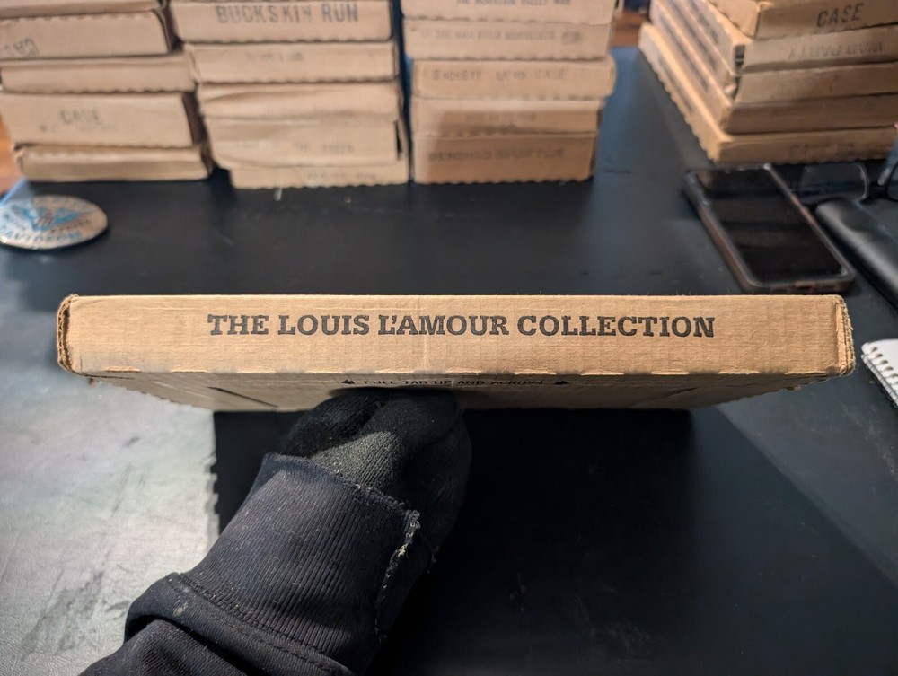 selling a new in box a vintage 1980s of the Louis l'amour collection the title is kilrone it is leather bound hardcover with a gold in laid signature on the front of the book it comes in the original box it was shipped in it is a western fiction published by bantam books it was published in the 1980s in great shape from a smoke free home please look at the pics and if you have any questions please ask