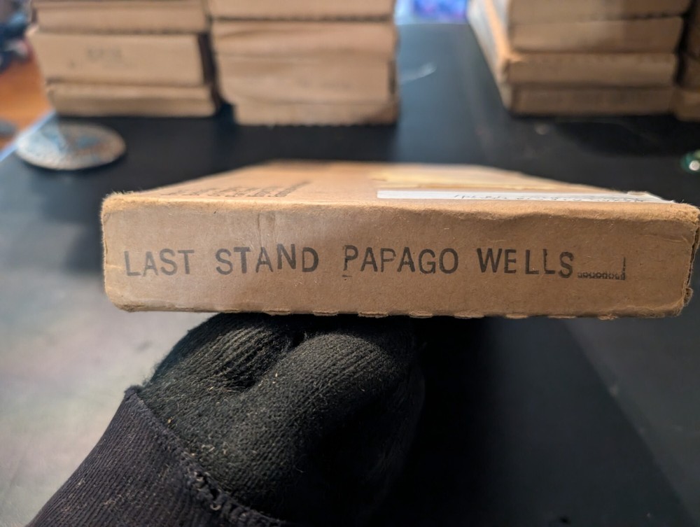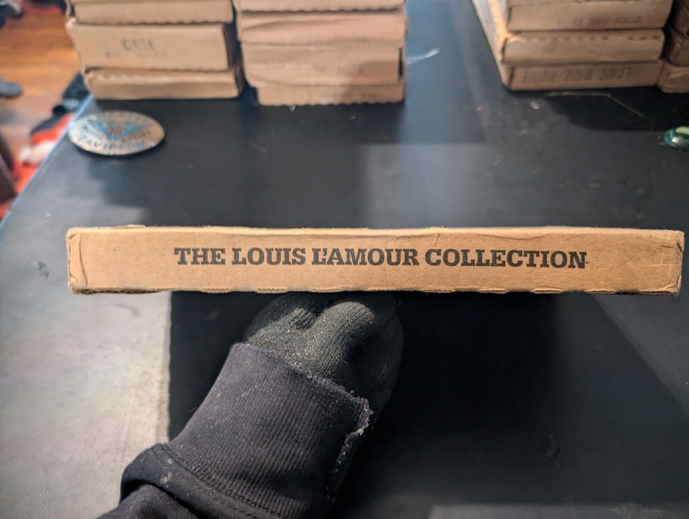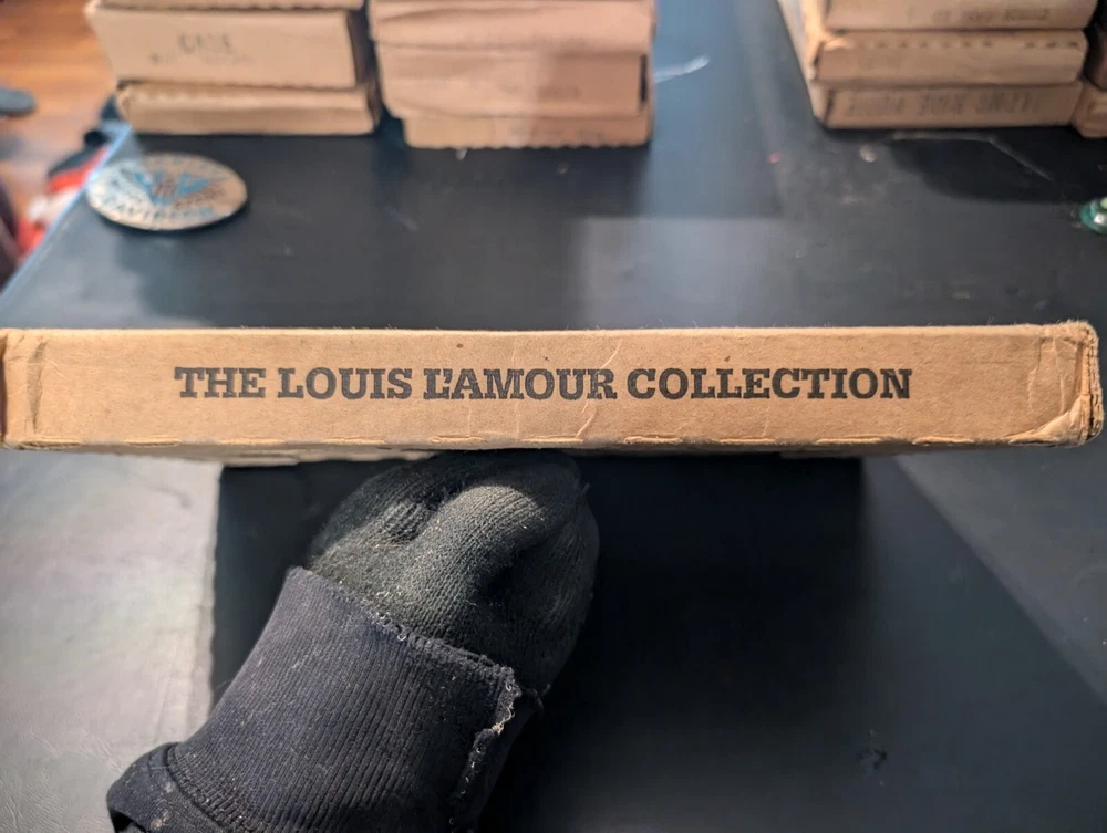 selling a new in box a vintage 1980s copy of the Louis l'amour the title is last stand papago wells it is leather bound hardcover with a gold in laid signature on the front of the book it comes in the original box it was shipped in it is a western fiction published by bantam books and was published in the 1980s in great shape from a smoke free home please look at the pics and ask any questions you have