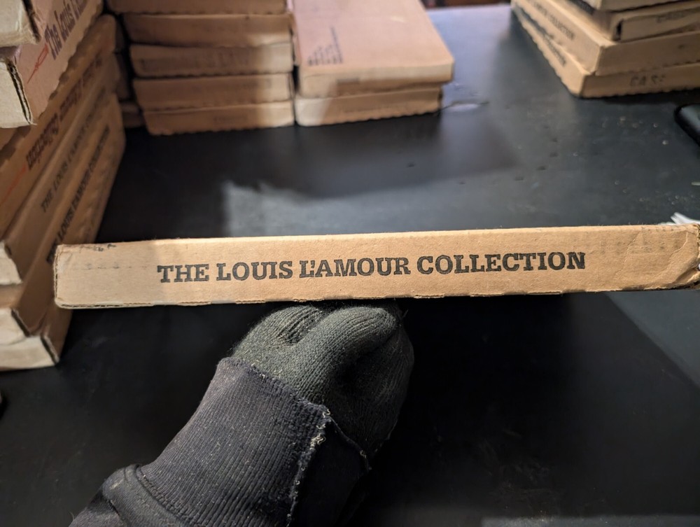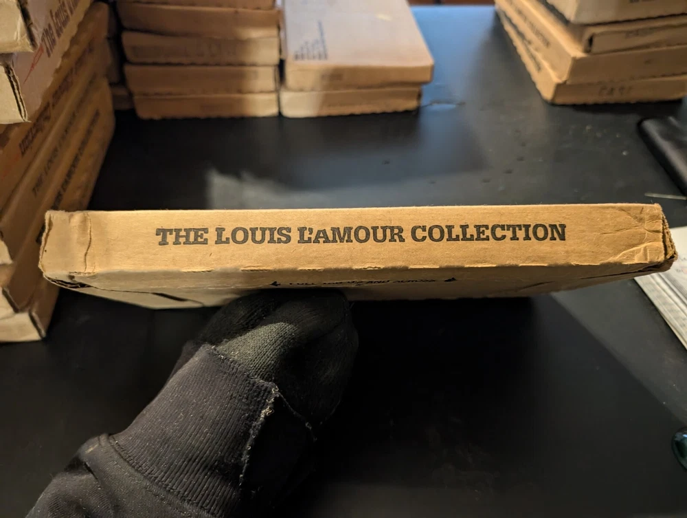 selling a new in box a vintage 1980s of the Louis l'amour collection the title is north to the rails it is leather bound hardcover with a gold in laid signature on the front of the book it comes in the original box it was shipped in it is a western fiction published by bantam books it was published in the 1980s in great shape from a smoke free home please look at the pics and if you have any questions please ask