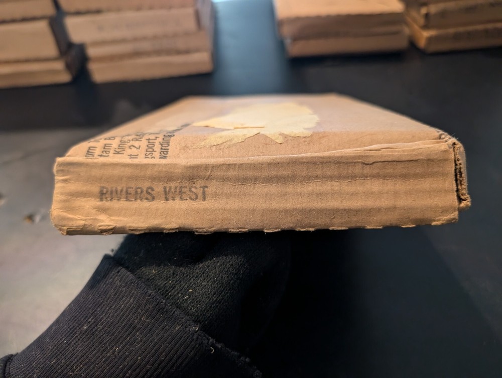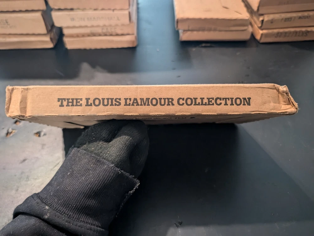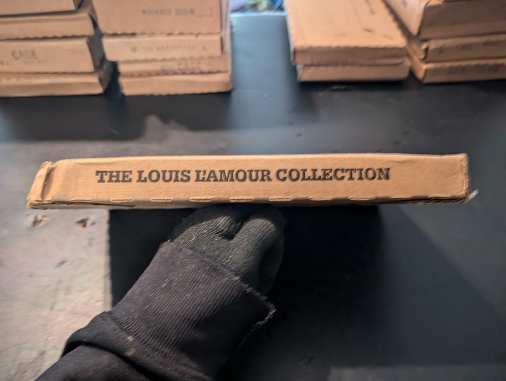 selling a new in box a vintage 1980s copy of the Louis l'amour the title is river west it is leather bound hardcover with a gold in laid signature on the front of the book it comes in the original box it was shipped in it is a western fiction published by bantam books and was published in the 1980s in great shape from a smoke free home please look at the pics and ask any questions you have
