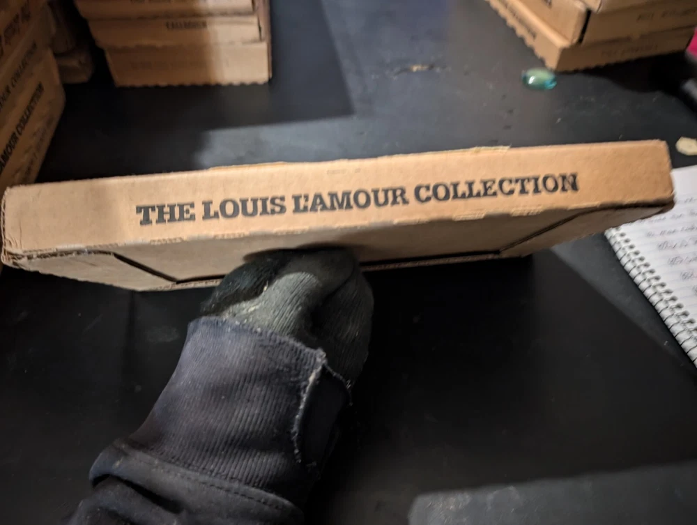 selling a new in box a vintage 1980s of the Louis l'amour collection the title is shalako it is leather bound hardcover with a gold in laid signature on the front of the book it comes in the original box it was shipped in it is a western fiction published by bantam books it was published in the 1980s in great shape from a smoke free home please look at the pics and if you have any questions please ask