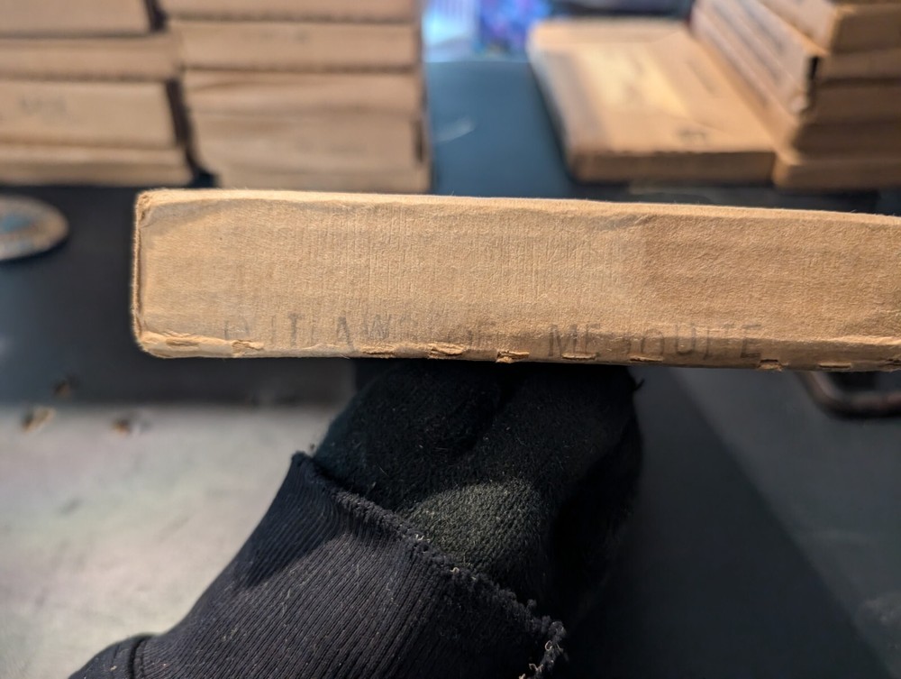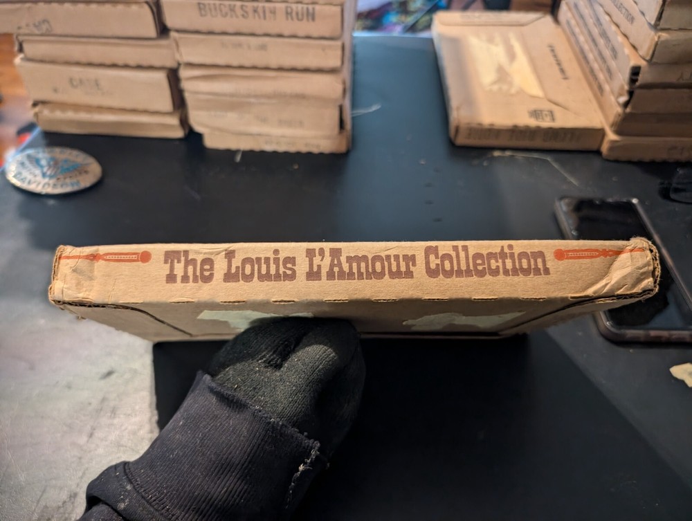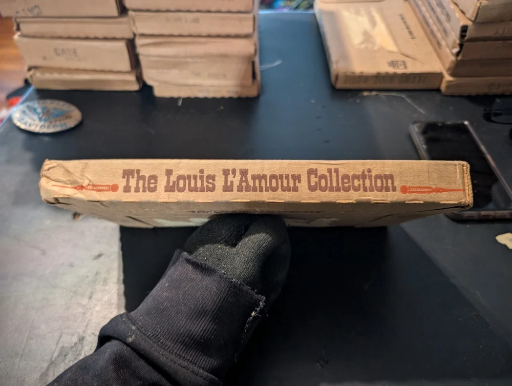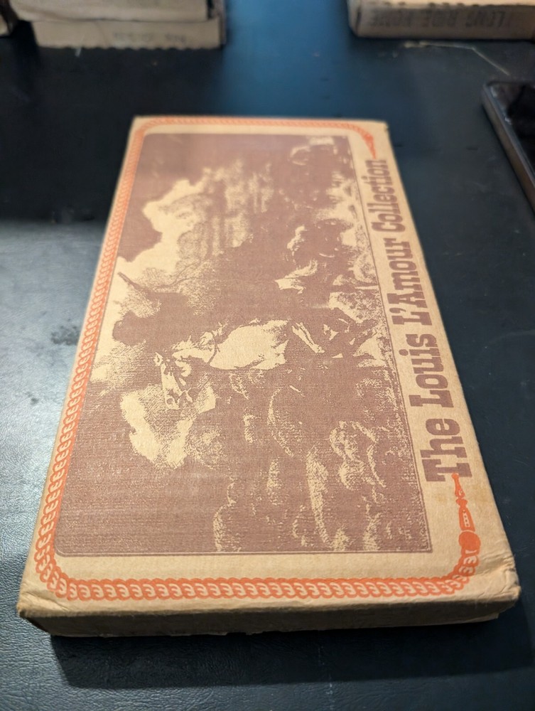 selling a new in box a vintage 1980s copy of the Louis l'amour the title is the outlaws of mesquite it is leather bound hardcover with a gold in laid signature on the front of the book it comes in the original box it was shipped in it is a western fiction published by bantam books and was published in the 1980s in great shape from a smoke free home please look at the pics and ask any questions you have