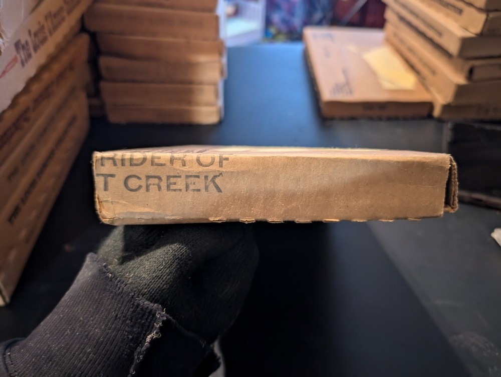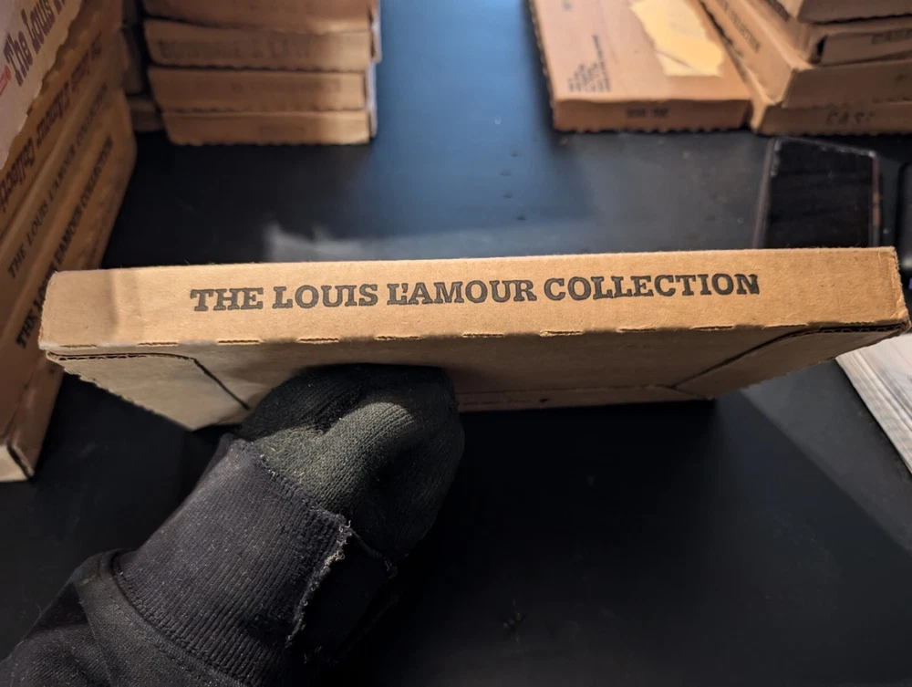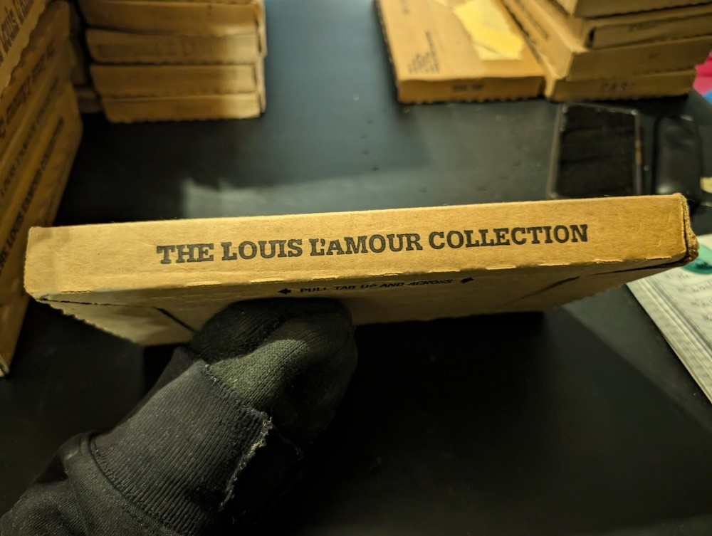 selling a new in box a vintage 1980s of the Louis l'amour collection the title is the rider of lost creek it is leather bound hardcover with a gold in laid signature on the front of the book it comes in the original box it was shipped in it is a western fiction published by bantam books it was published in the 1980s in great shape from a smoke free home please look at the pics and if you have any questions please ask