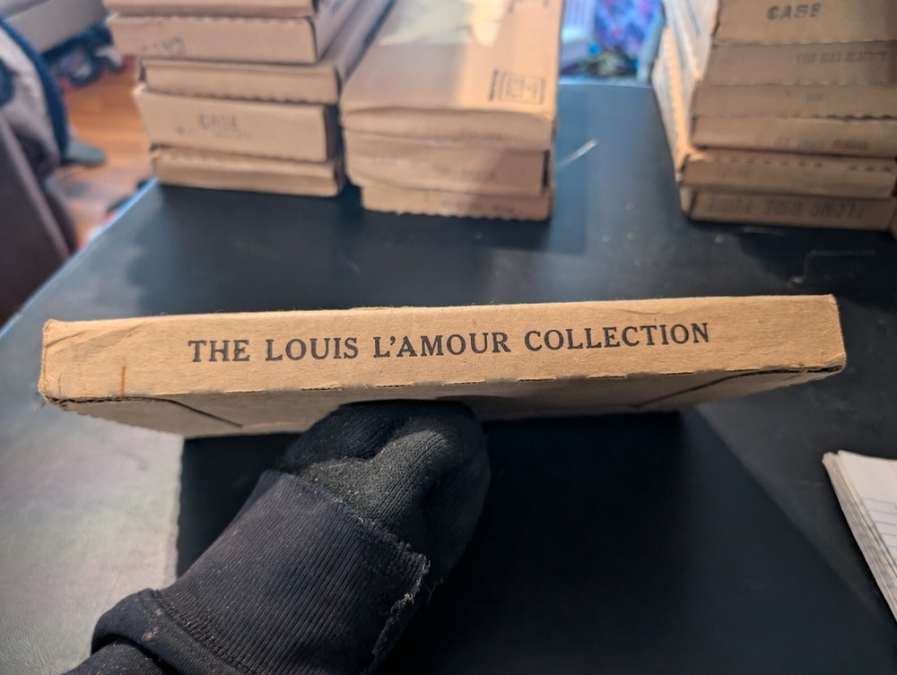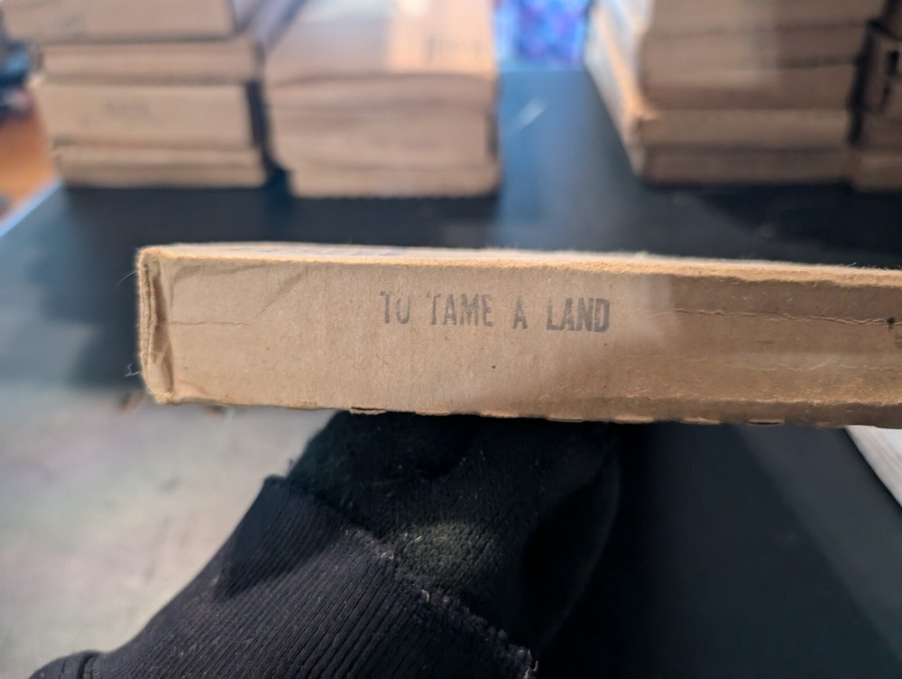 selling a new in box a vintage 1980s copy of the Louis l'amour the title is to tame a land it is leather bound hardcover with a gold in laid signature on the front of the book it comes in the original box it was shipped in it is a western fiction published by bantam books and was published in the 1980s in great shape from a smoke free home please look at the pics and ask any questions you have