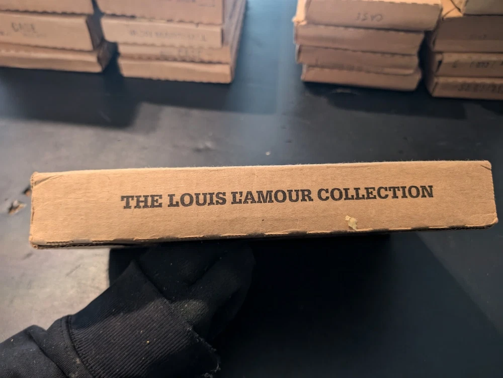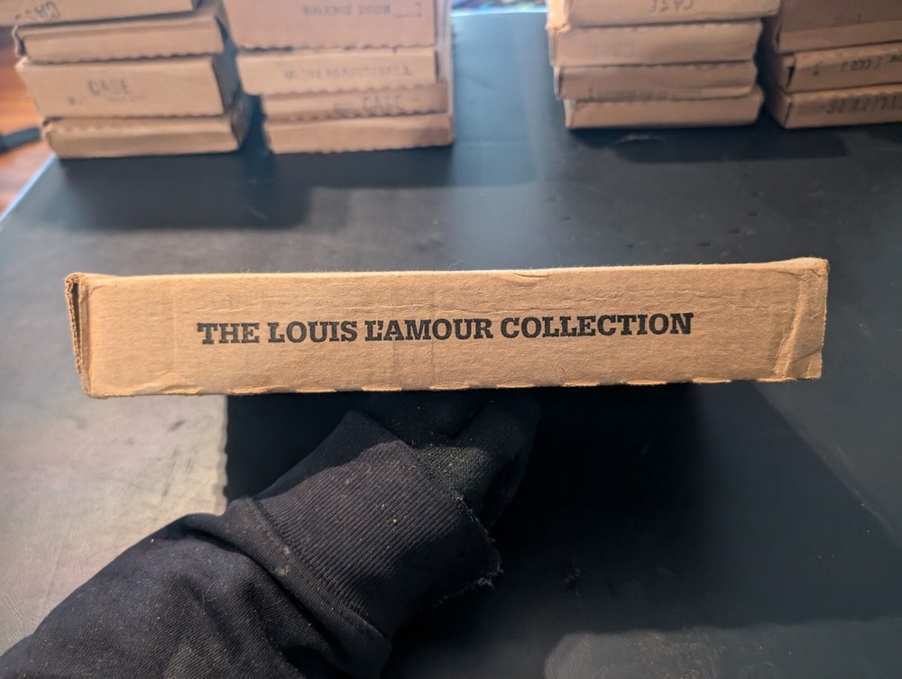 selling a new in box a vintage 1980s copy of the Louis l'amour the title is trail to crazy man it is leather bound hardcover with a gold in laid signature on the front of the book it comes in the original box it was shipped in it is a western fiction published by bantam books and was published in the 1980s in great shape from a smoke free home please look at the pics and ask any questions you have