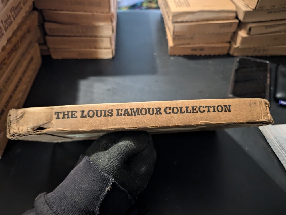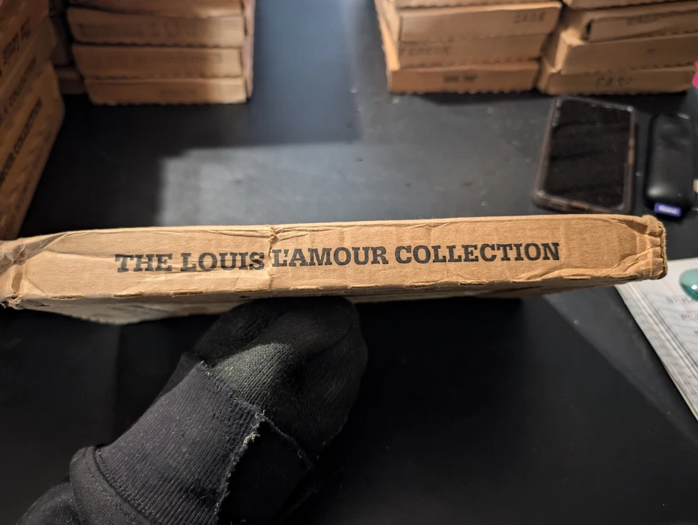 selling a new in box a vintage 1980s of the Louis l'amour collection the title is tuckrer it is leather bound hardcover with a gold in laid signature on the front of the book it comes in the original box it was shipped in it is a western fiction published by bantam books it was published in the 1980s in great shape from a smoke free home please look at the pics and if you have any questions please ask
