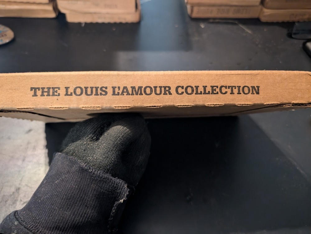 selling a new in box a vintage 1980s copy of the Louis l'amour the title is west from singapore it is leather bound hardcover with a gold in laid signature on the front of the book it comes in the original box it was shipped in it is a western fiction published by bantam books and was published in the 1980s in great shape from a smoke free home please look at the pics and ask any questions you have