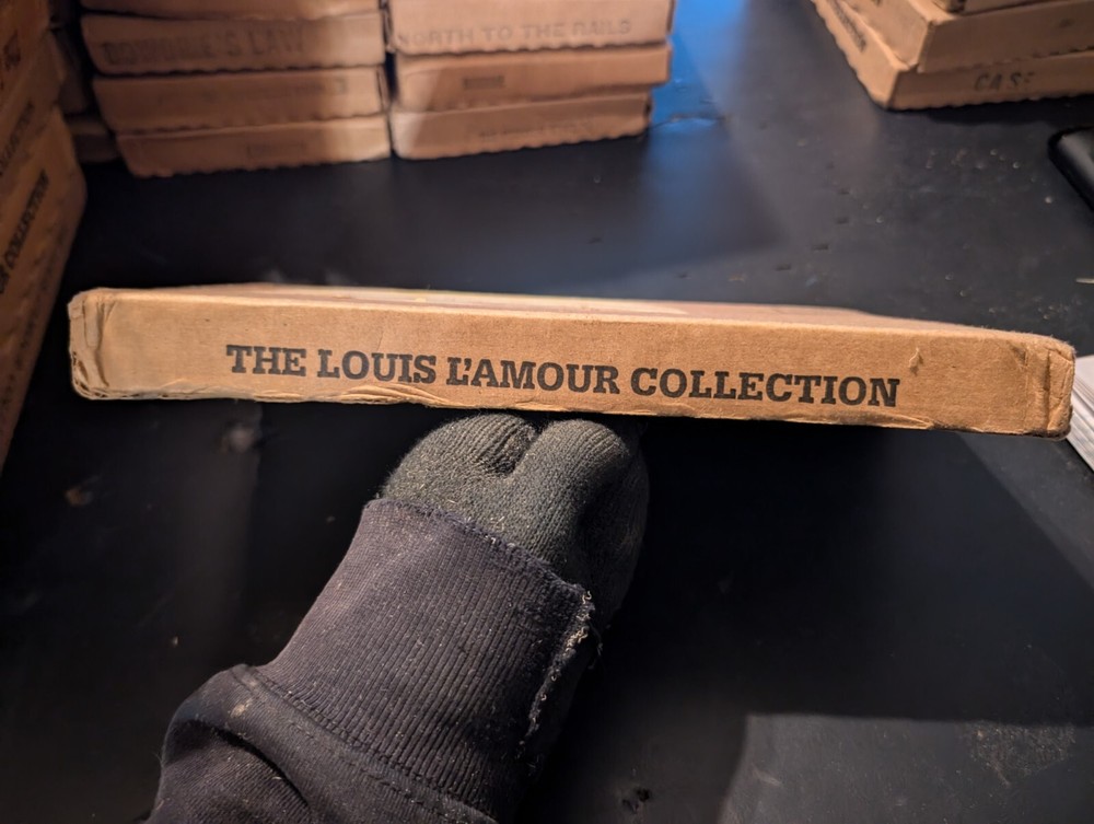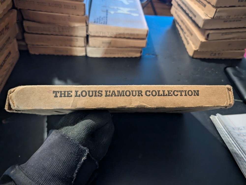 selling a new in box a vintage 1980s of the Louis l'amour collection the title is west ward the tide it is leather bound hardcover with a gold in laid signature on the front of the book it comes in the original box it was shipped in it is a western fiction published by bantam books it was published in the 1980s in great shape from a smoke free home please look at the pics and if you have any questions please ask