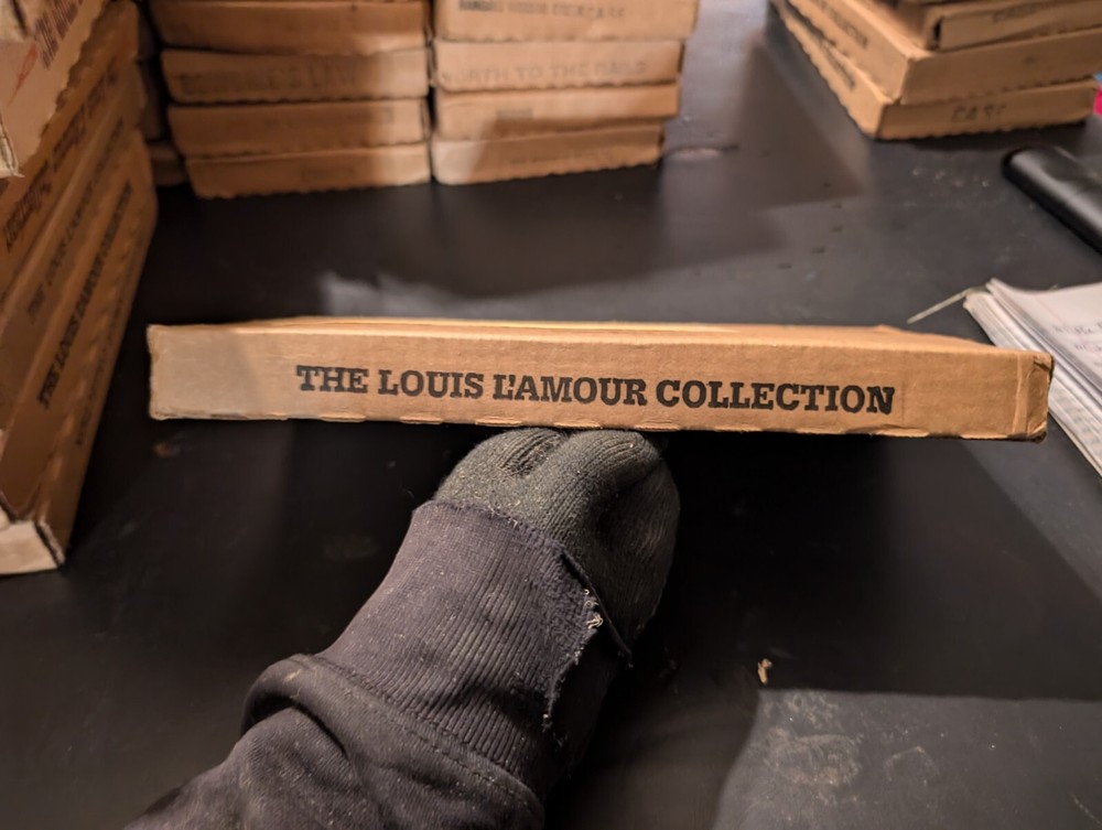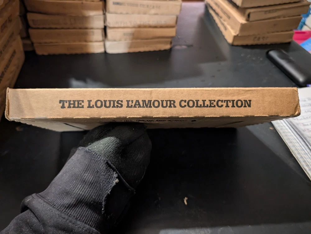 selling a new in box a vintage 1980s of the Louis l'amour collection the title is where the long grass blows it is leather bound hardcover with a gold in laid signature on the front of the book it comes in the original box it was shipped in it is a western fiction published by bantam books it was published in the 1980s in great shape from a smoke free home please look at the pics and if you have any questions please ask