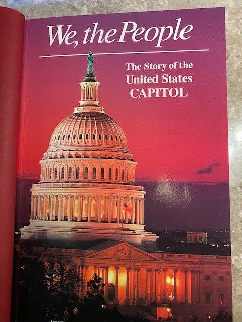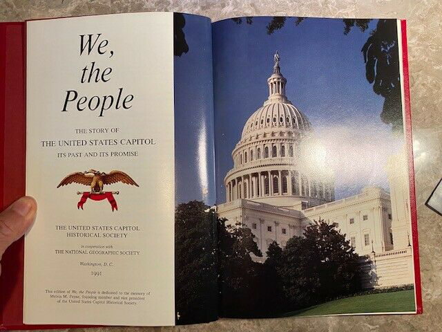 VERY RARE --- HARD LEATHER COVER -- NEW NEVER READ We, The People The Story of the United States CAPITOL Indistinguishable signature on the inside cover page.